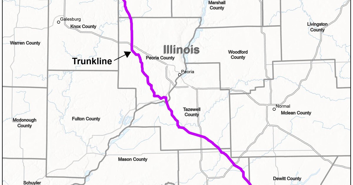The pipeline would enter Tazewell County on the southern edge of Pekin and cut a southeastern path through the county en route to Logan County, and ultimately, a permanent underground sequestration site in Decatur. The high-pressure pipeline transports liquefied carbon dioxide captured from ethanol plants. Carbon capture and sequestration is touted as a measure to cut carbon emissions.